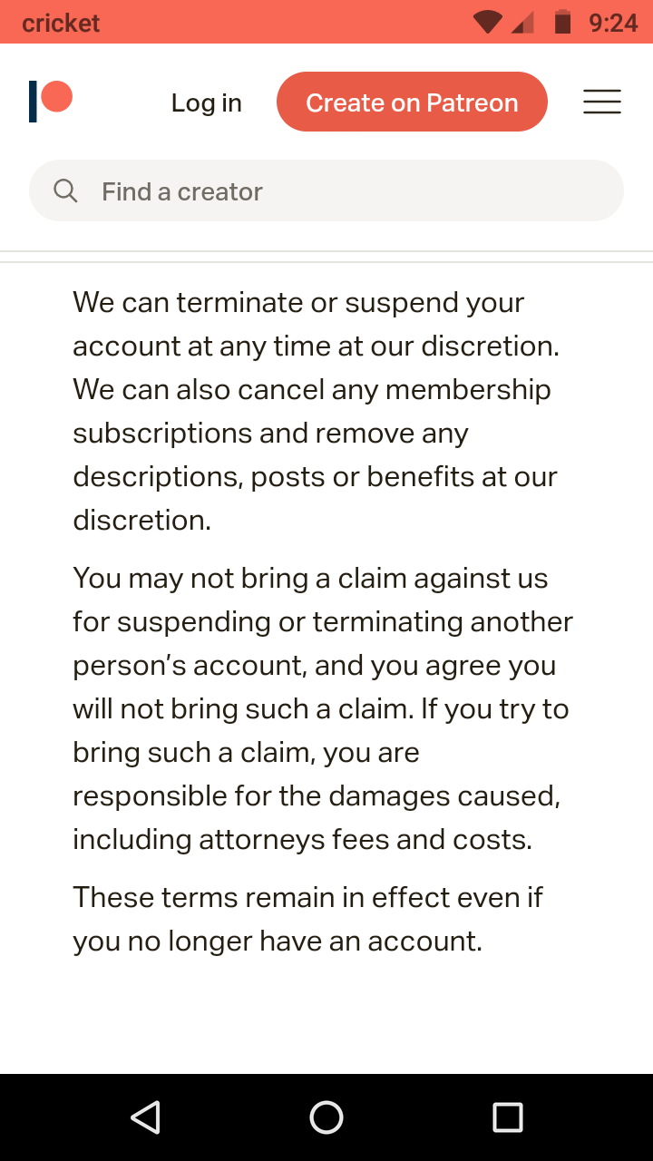 If he broke terms of service i would understand, but companies like youtube, twitter, and patreon all have a reputation of changing their policies and ToS when itβs convinient